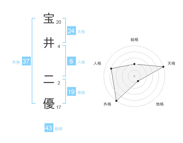 宝井 二優さんの総格は43画の2点!
