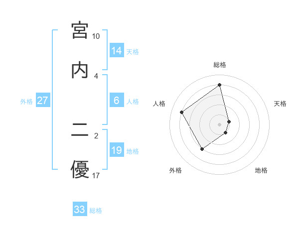 宮内 二優さんの総格は33画の4点!