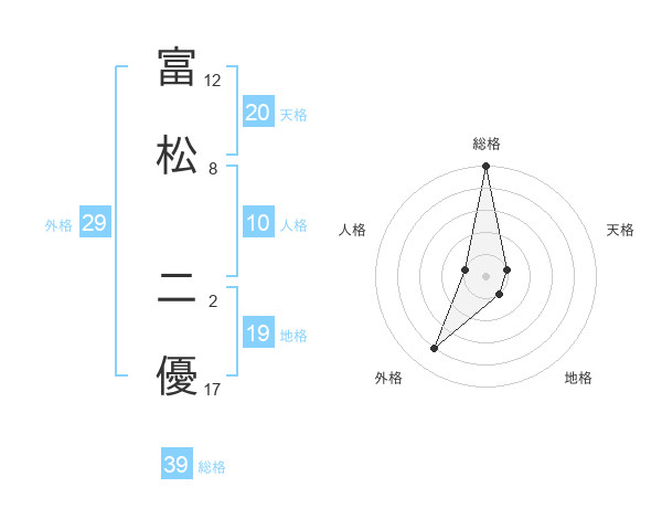 富松 二優さんの総格は39画の5点!
