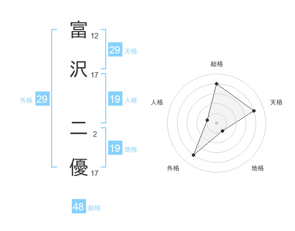 富沢 二優さんを姓名の画数から五運を鑑定