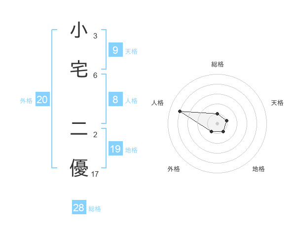 小宅 二優さんの総格は28画の1点!