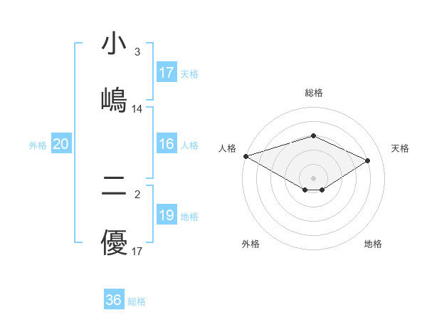 小嶋 二優さんの天格は17画の4点!