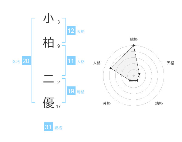 小柏 二優さんの総格は31画の5点!