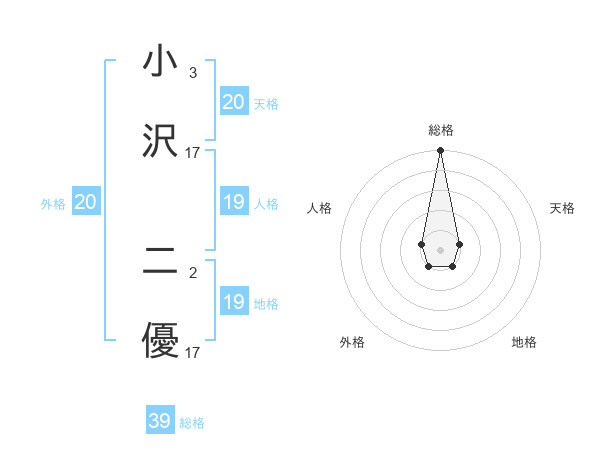 小沢 二優さんの天格は20画の1点!