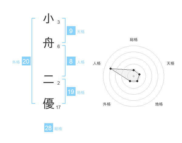 小舟 二優さんの総格は28画の1点!