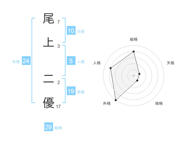 尾上 二優さんの総格は29画の4点!