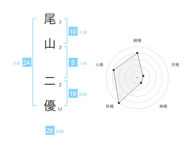 尾山 二優さんの総格は29画の4点!