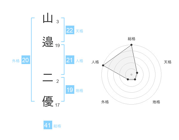 山邉 二優さんの天格は22画の1点!