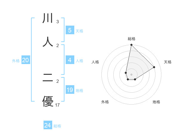 川人 二優さんの総格は24画の5点!