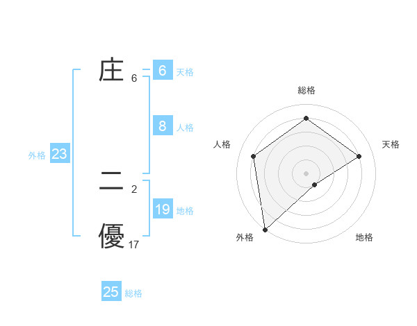 庄 二優さんの総格は25画の4点!