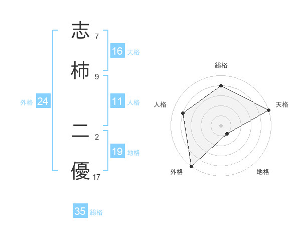 志柿 二優さんの総格は35画の4点!