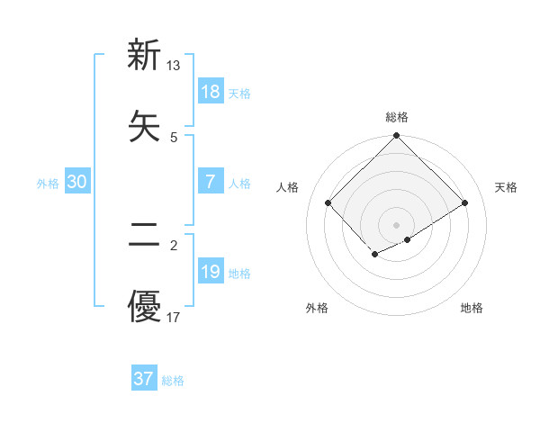 新矢 二優さんの総格は37画の5点!