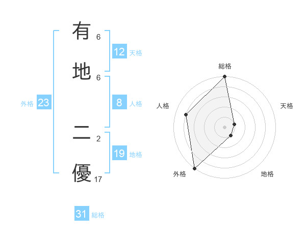 有地 二優さんの総格は31画の5点!