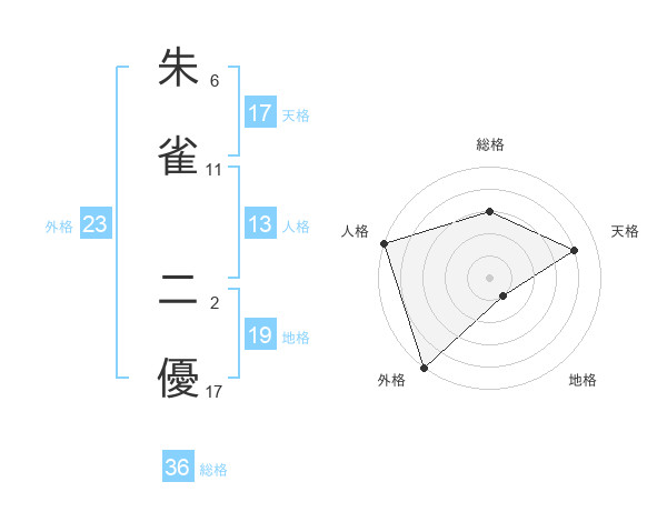 朱雀 二優さんの外格は23画の5点!