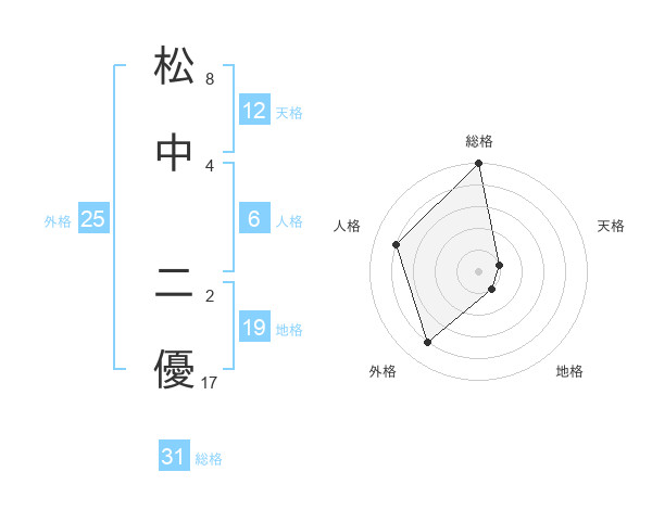 松中 二優さんの総格は31画の5点!