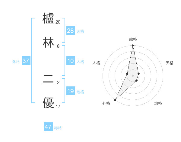 櫨林 二優さんを姓名の画数から五運を鑑定