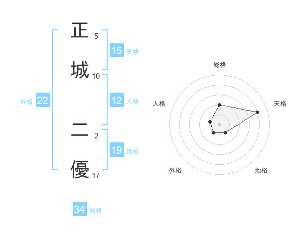 正城 二優さんを姓名の画数から五運を鑑定