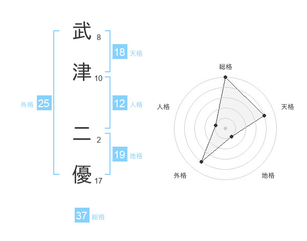武津 二優さんを姓名の画数から五運を鑑定