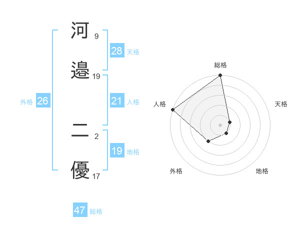 河邉 二優さんの総格は47画の5点!