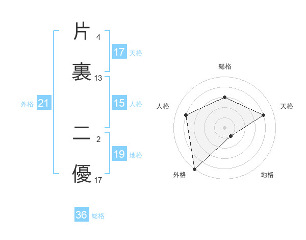 片裏 二優さんの天格は17画の4点!
