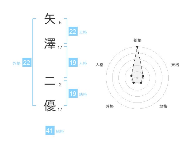 矢澤 二優さんの天格は22画の1点!