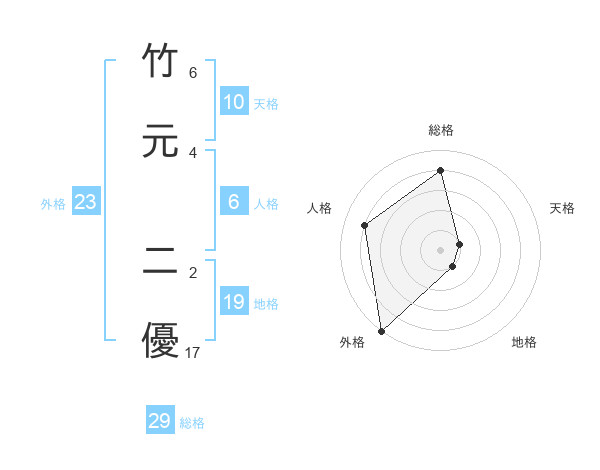 竹元 二優さんの総格は29画の4点!