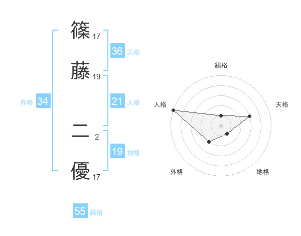 篠藤 二優さんを姓名の画数から五運を鑑定
