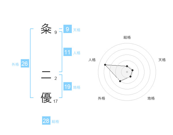 粂 二優さんの総格は28画の1点!