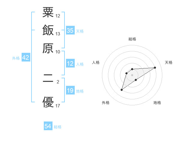 粟飯原 二優さんを姓名の画数から五運を鑑定