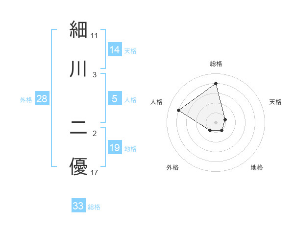 細川 二優さんの総格は33画の4点!