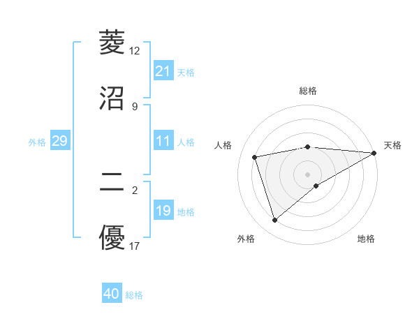 菱沼 二優さんの天格は21画の5点!