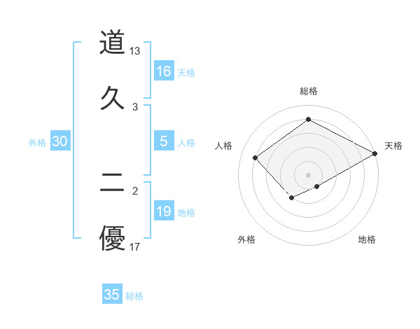 道久 二優さんの天格は16画の5点!