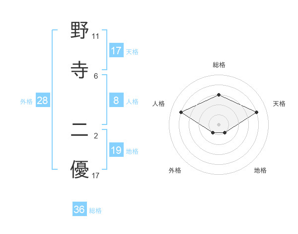 野寺 二優さんの天格は17画の4点!