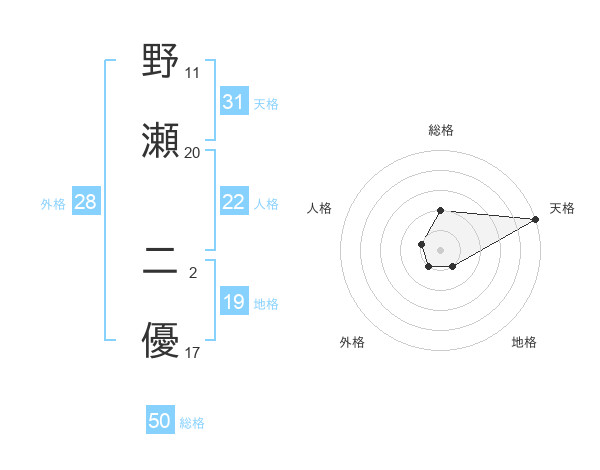 野瀬 二優さんを姓名の画数から五運を鑑定