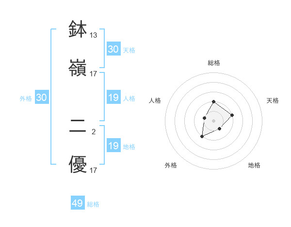 鉢嶺 二優さんの総格は49画の2点!
