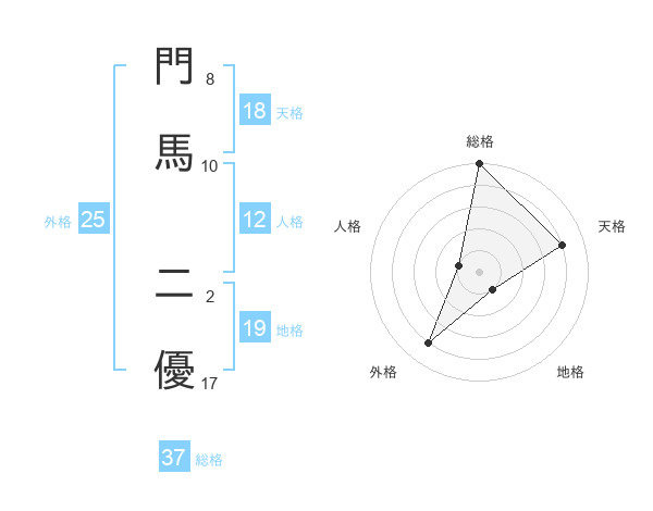 門馬 二優さんの総格は37画の5点!