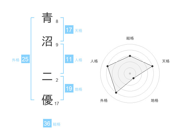 青沼 二優さんの天格は17画の4点!