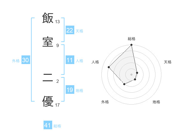 飯室 二優さんの総格は41画の5点!