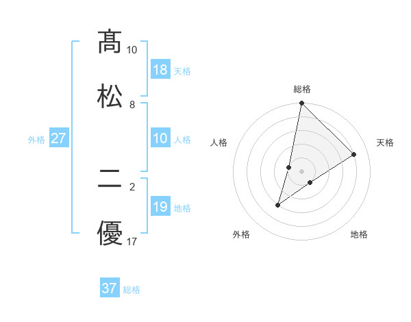 髙松 二優さんの総格は37画の5点!