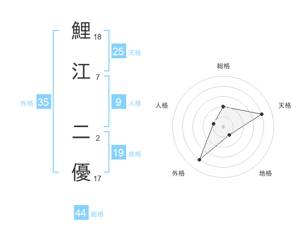 鯉江 二優さんの総格は44画の2点!