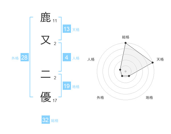 鹿又 二優さんを姓名の画数から五運を鑑定
