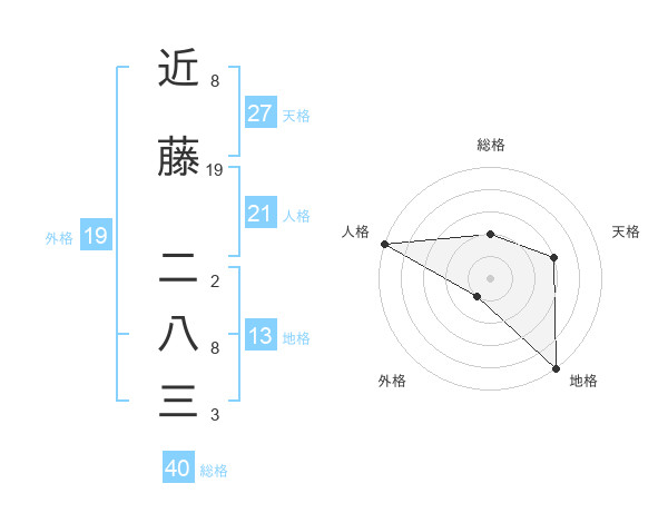 近藤 二八三さんを姓名の画数から五運を鑑定