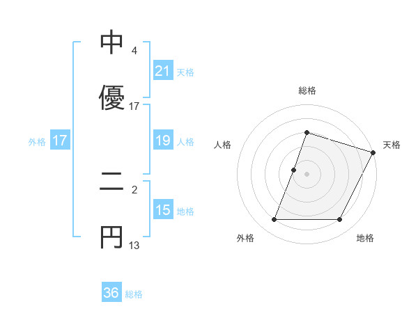 中優 二円さんの外格は17画の4点!