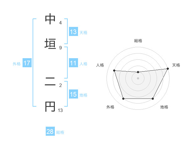 中垣 二円さんの天格は13画の5点!