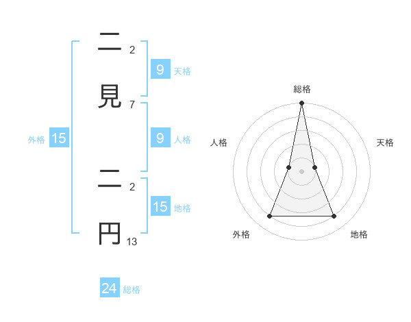 二見 二円さんの外格は15画の4点!