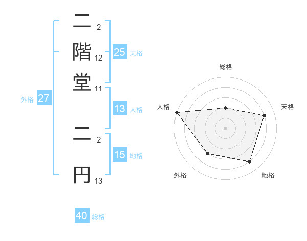 二階堂 二円さんの総格は40画の2点!