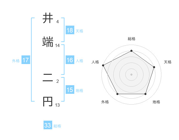 井端 二円さんの天格は18画の4点!
