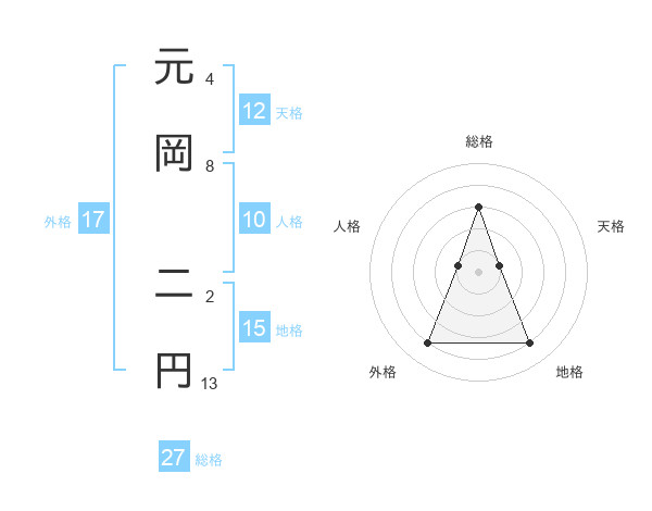 元岡 二円さんの総格は27画の3点!