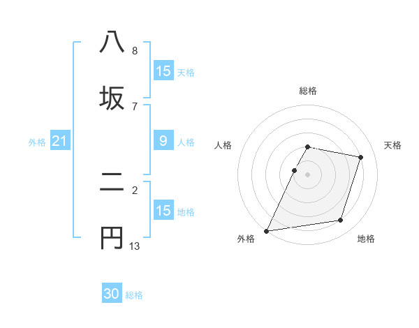 八坂 二円さんの外格は21画の5点!