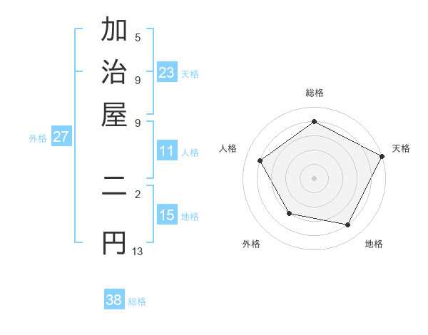 加治屋 二円さんを姓名の画数から五運を鑑定